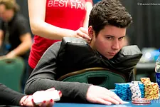 Nick "FU_15" devenait dès lors inarrêtable, éliminant successivement Ben Heath, Chance Kornuth, Andrey Zaichenko et Brian Yoon. Son rush, déjà spectaculaire, n'était pourtant pas terminé et allait donner lieu à une confrontation en haute altitude contre Beckley. Après une relance initiale à 180 000 de Winter, Maimone et Beckley payaient et le trio découvrait un flop 8♠K♠A♦ checké de manière collégiale.