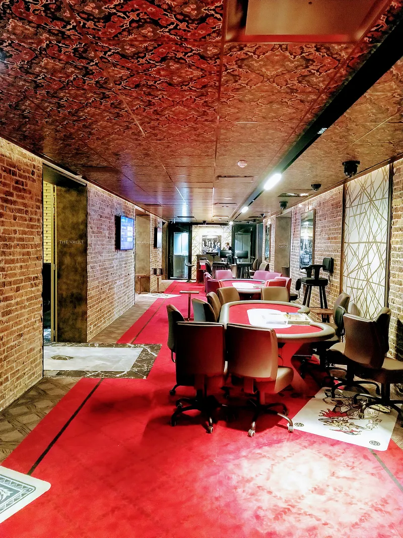 Le souci du détail est palpable partout avec des tapis de tables différents selon la salle. les chaises de la salle de poker VIP valent de l'or avec le logo de la table de Mendeleïev (79 AU), des dessins stylisés de cartes aux murs ou sur les moquettes... il y aura des détails à découvrir à chaque visite, même jusqu'aux toilettes.