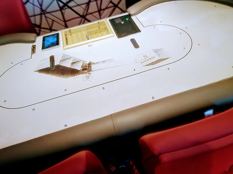 Les tapis des différentes tables sont aussi décorés de manière unique. La salle Santos-Dumont permet de découvrir l'avion du Brésilien qui fut un membre de l'ACF après avoir été le premier à effectuer un vol en avion en 1906. La Dragon Room a une atmosphère plus asiatique... et 'The Vault' (la salle réservée à la plus grosse table de poker, ndlr) a elle droit à un décors en mode lingot d'or !