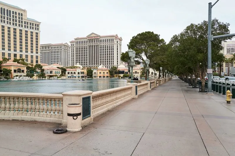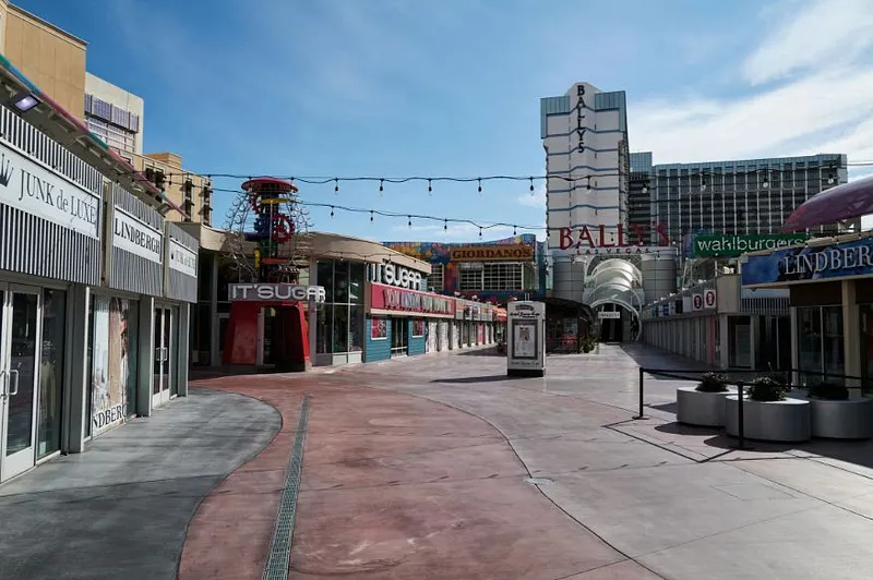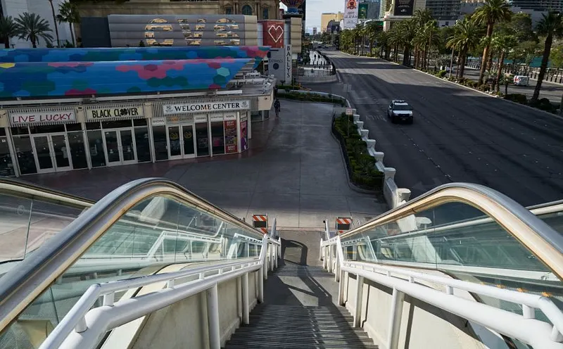 Des hordes de touristes arpentent le Strip mais aussi de nombreux spécialistes des arts de rue ou des vendeurs d'eau, de recettes miracles et de l'absolution éternelle... enfin c'était hier. Ces espaces dont l'architecture a été pensée pour accueillir des milliers de personnes sont désormais vides.