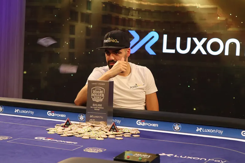 En vacances, le Français s'est chauffé pour filer à Chypre disputé le Super High Roller Bowl Europe... et notamment l'Event #2 à 25 000$ l'entrée. Chipleader à l'entame du Final Day, le tricolore a formidablement négocié la partie en direct mercredi après-midi gratuitement sur PokerNews et en streaming sur PokerGo, pour terminer très ému, avec le trophée.