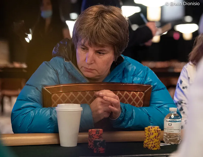 Moins fournie en jetons, mais avec le 7e tapis des survivantes, Marle Cordeiro (685,000) tentera elle aussi d'atteindre la Table Télévisée lors d'un Jour 3 à suivre sur PokerNews. Peut être "Mme Spraggy" a-t-elle changé d'avis depuis le mois d'août ?!