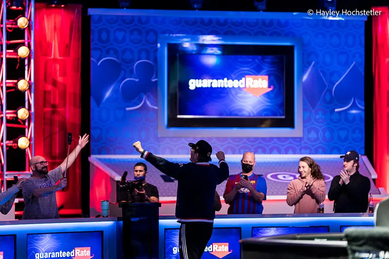Chipleader à l'entame du Final Day, Porter s'incline au pied du podium après avoir tiré une paire, éliminé par Jake Schwartz. Vitch s'est ensuite fait sortir par Hellmuth qui a mal commencé l'ultime duel.