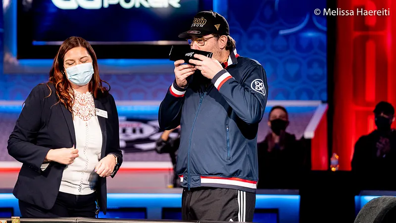 "J'avais toujours voulu un bracelet de deuce-to-seven", a confié Hellmuth à sa femme Katherine quelques secondes après avoir serré la main de son dauphin Jake Schwartz.
