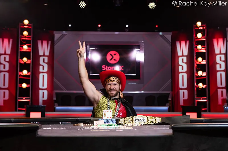 Le soleil s'était levé il y a 8 minutes quand Dan Cates a remporté pour la deuxième fois consécutive le Poker Players Championship à 50 000$ l'entrée. Un exploit par soumission pour celui qui avait annoncé son doublé et a disputé le tournoi grimé en Macho Man. Plus qu'un déguisement, 'Jungleman' était le personnage ces derniers jours... l'acteur repart avec 1 449 103$ après un dernier duel face au double vainqueur WSOP Yuri Dzivielevski!