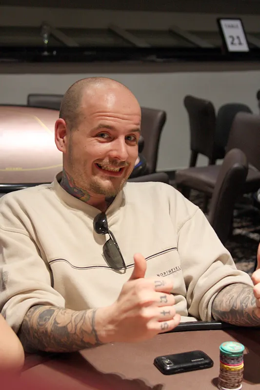Avant même de voir l'action de son adversaire, il pousse son tapis de 29.250 jetons en annonçant "Quoique tu fasses, je fais tapis". Son adversaire décide de payer.